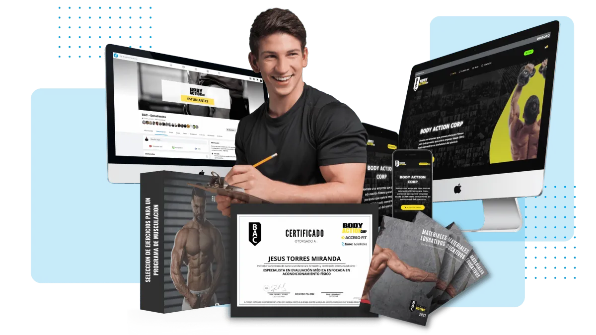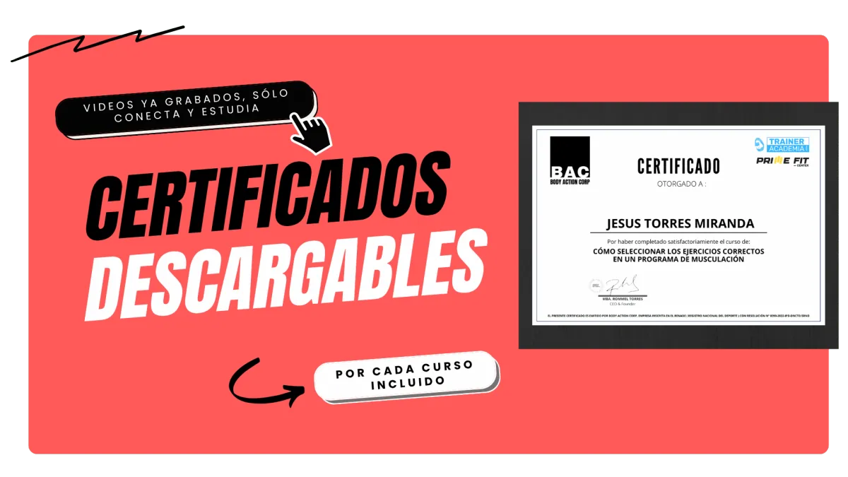 Lleva nuestro conocimiento donde estés con sólo conectarte desde tu celular o laptop 24 horas/ 7 días de la semana. NO son cursos de entrenamiento o algún contenido que puedas ver GRATIS en un video de youtube. Es lo OPUESTO , ya que te enseña como entrenar personas, además de un otorgarte un certificado que es requisito si te presentas a un gimnasio a trabajar.